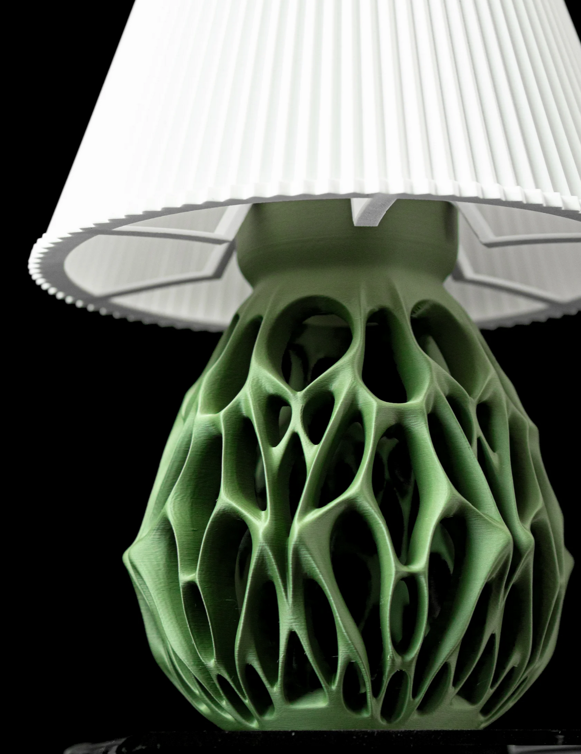 Diese Tischlampe ist mehr als nur Licht – sie ist ein Statement für nachhaltiges Design. Der in PLA 3D-gedruckte Lampenfuß erinnert mit seiner organisch verzweigten Struktur an natürliche Formen wie Wurzeln oder Korallen und bringt eine fast lebendige Dynamik in deinen Wohnraum. In sanftem Olivgrün gehalten, fügt sie sich perfekt in moderne, naturnahe oder minimalistische Einrichtungsstile ein.