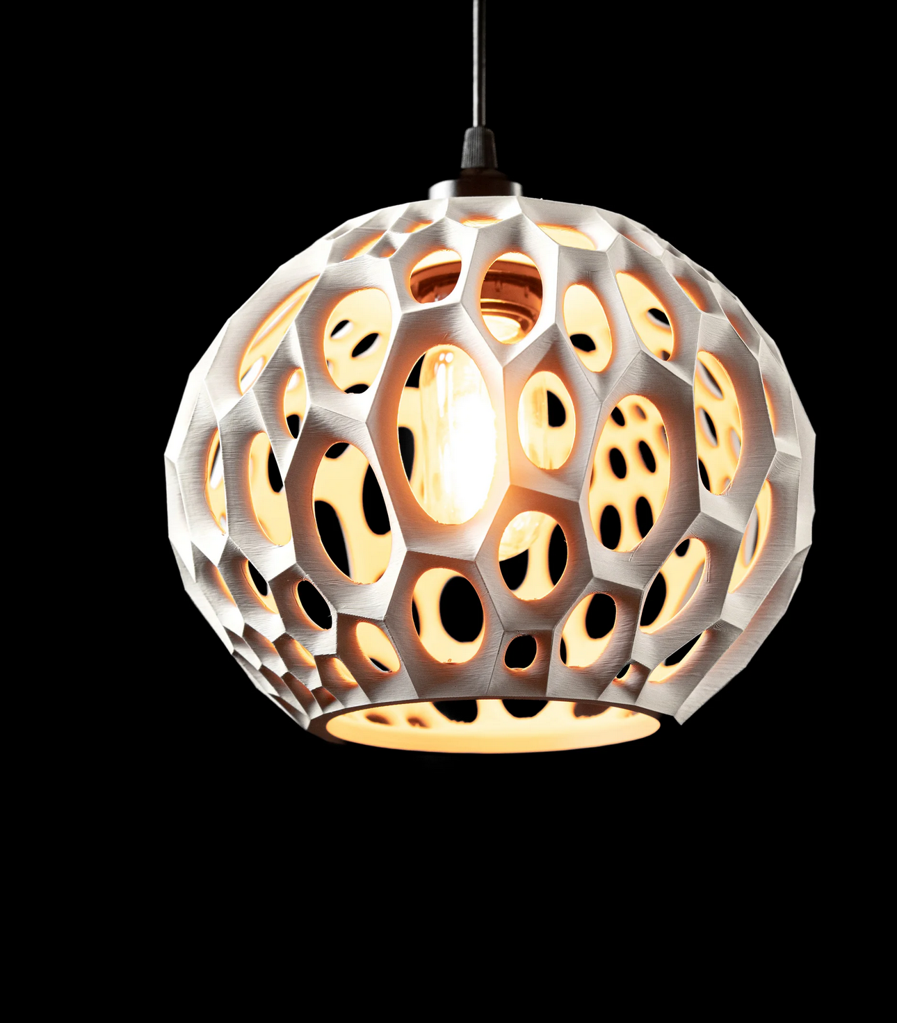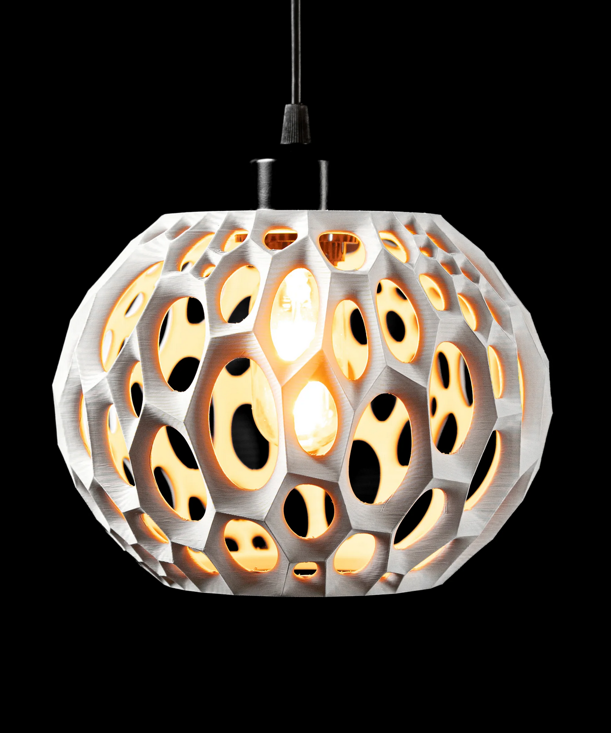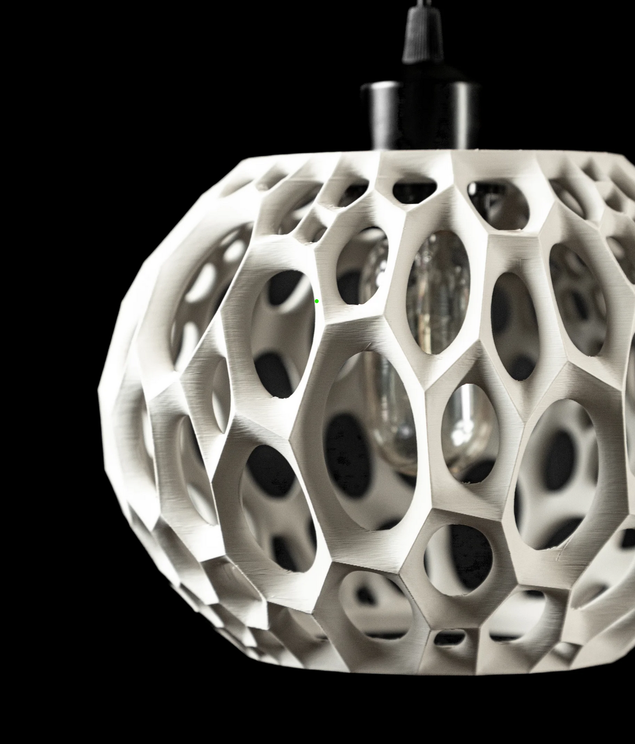 Diese Lampe ist kein Lichtobjekt – sie ist ein Statement. Mit ihrer skelettartigen Struktur im futuristischen Wabendesign bringt sie nicht nur Licht, sondern auch Charakter in jeden Raum. Gefertigt im hochpräzisen 3D-Druckverfahren wirkt sie wie aus einer anderen Dimension: leicht, luftig, lebendig.